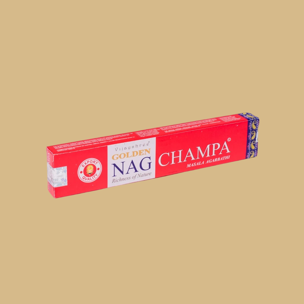 Golden Nag Champa Räucherstäbchen verströmen einen harmonischen Duft aus blumigen, holzigen und leicht süßlichen Noten. Diese Sorte zählt zu den bekanntesten Varianten indischer Räucherstäbchen.