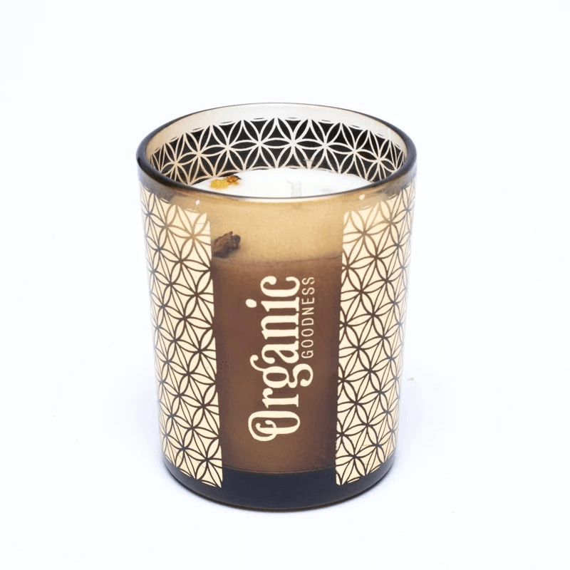 Organic Goodness Duftkerze Weihrauch und Myrrhe wird aus natürlichem Sojawachs hergestellt und kombiniert warme, würzige und harzige Duftnoten. Die Kerze wird handgegossen und in einem dekorativ gestalteten Glasgefäß geliefert.